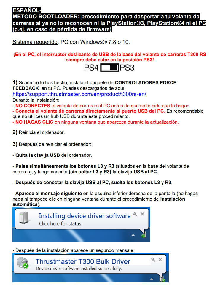 Boa Tarde! tenho um Thrustmaster T300 GT limited, não detecta no pc testei em outro pc e nada, fiz o procedimento bootloader e nada, no windows diz ( dispositivo USB Desconhecido(Falha na Solicitação de Descritor de Despositivo) erro 43), alque pra me ajudar