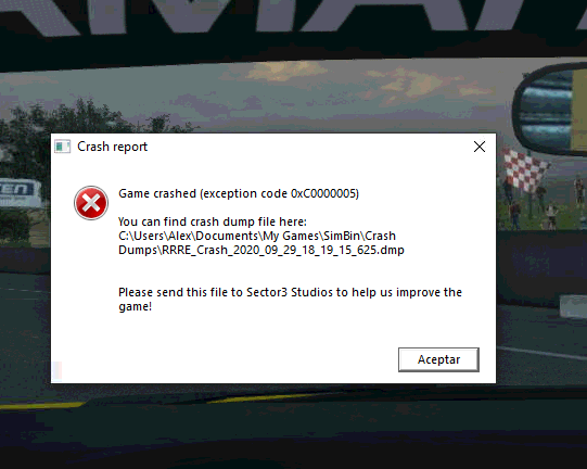 Adicionalmente tambi茅n nos encontramos con este error Game crashed (exception code 0xC000005) lo mas curioso de todo esto es que solo se produc铆a el error al engranar la marcha, es decir: