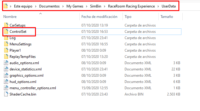 Investigando un poco pudimos deducir que alg煤n par谩metro de los ajustes del volante no era compatible con las f铆sicas del juego, as铆 que buscando un poco dimos con la carpeta que guarda la configuraci贸n del Force Feedback en Raceroom Experience. La carpeta en cuesti贸n se encuentra en : Documentos\My Games\SimBin\RaceRoom Racing Experience\UserData\ControlSet